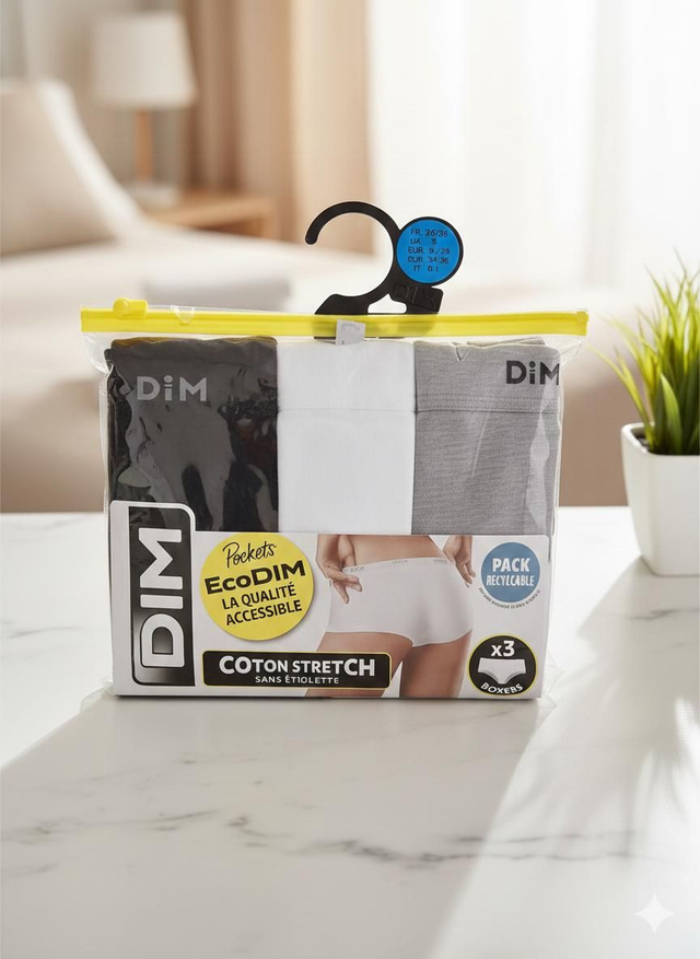 Découvrez le Pack de 3 Boxers Coton Stretch DIM Pockets EcoDIM, l'alliance parfaite entre confort quotidien, qualité durable et prix accessible.